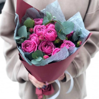 Нежное сочетание кустовых роз в прекрасном букете для невесты. Бутоньерка и пакет лепестков в подарок!